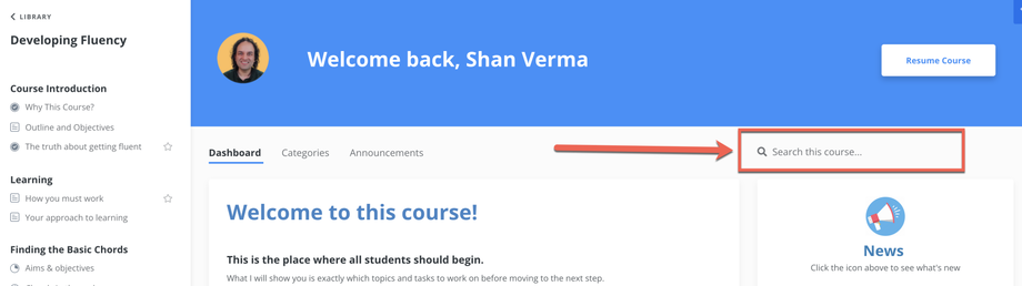 Please note that you will automatically unlock categories in the Developing Fluency course as you pass short assessments. Therefore, a search may return lessons that you have not unlocked yet. The members' area will return far more results as there are more lessons.